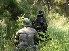 …なんて遊んでたら(嘘)、丘の先のブッシュの切れ間にスネオ君発見。しかも、何やらこっちを見てL96を構えてる様子です。