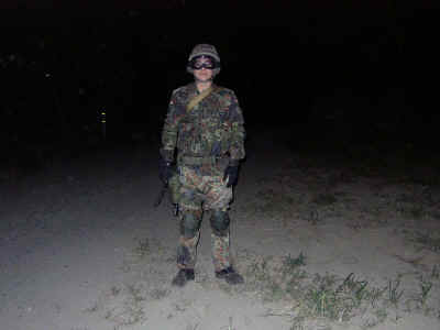 管理人とフラッグの多分中間辺りから、ビシビシと発射音が聞こえるぢゃないですか!ただ、完全に闇…というかブッシュの影に溶け込んでいて視認が出来ないので、ひとまず音だけを頼りにSDを連射。この攻撃で、運良く守備隊1人を撃墜したんですが、ちょっと近かったかもでスミマセン(ーー;)